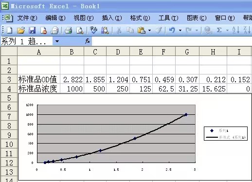 - 表格:X=浓度,Y=平均OD。